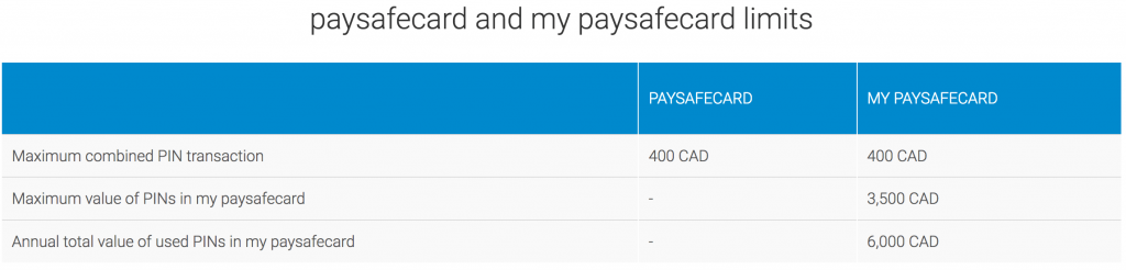 Para o meu padrão PaySafeCard, o limite de transação é definido como US $ 250. Os cartões para adultos vêm com limites diferentes, disponíveis no local oficial.
