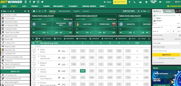 O Betwinner Sportsbook possui esportes ilimitados e cerca de 1000 eventos estão lá todos os dias. Isso significa que, mesmo que você perca uma única partida, você terá mais opções para escolher. Uma breve descrição das correspondências é dada aqui.