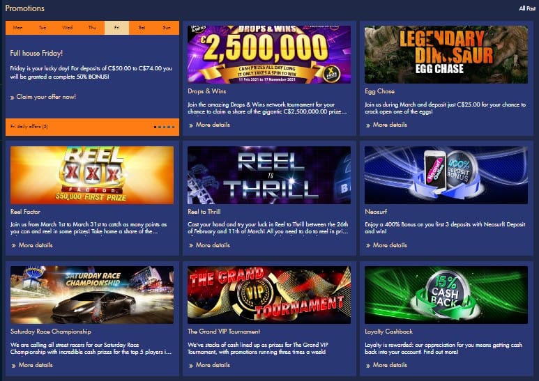 Manter -se leal a este site também o beneficiará, pois eles oferecem um reembolso de 15% para seus jogadores leais e eles pagam isso toda segunda -feira. Embora 15 % não pareça muito quando você é um jogador dedicado, 15 % podem resultar em muito, especialmente se você é um jogador de rolos.
