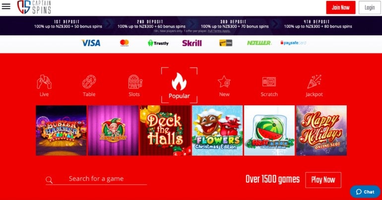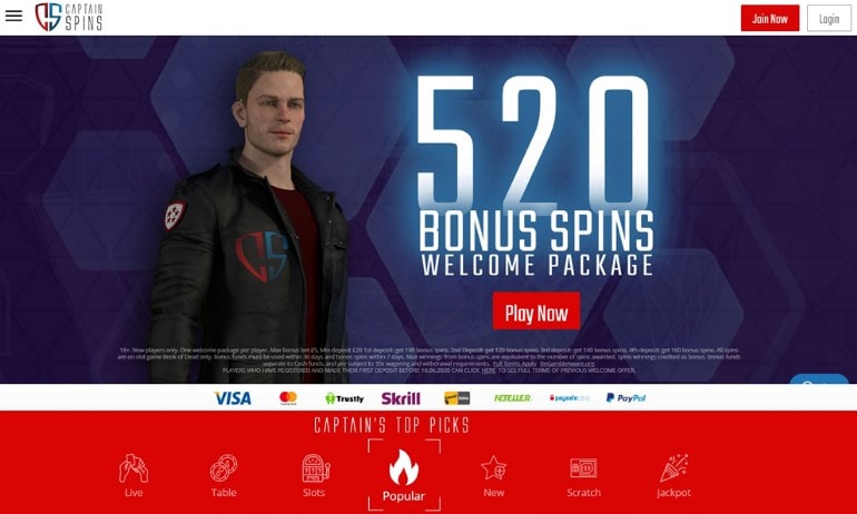 - Giros grátis: O cassino oferece tantas rodadas gratuitas no seu primeiro ao quarto depósito. Se você calcular o valor total que você recebe de depósito sozinho, ele concede Até 260 rodadas de spin de 260 spin. Somente cassinos limitados possuem esse tipo de oferta na indústria de jogos de azar - não é de admirar que os jogadores sejam tão leais aos capitões de capitão.