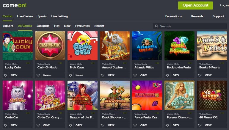 O Comeon Casino não depende de apenas um provedor para seu software de jogo. Os slots, jackpots e coleções de jogos de mesa são alimentados por fornecedores como Microgaming, Netent, Oryx, No Limit City, Quickspin e Play'n Go. A seção de cassino ao vivo é alimentada principalmente por jogos de evolução