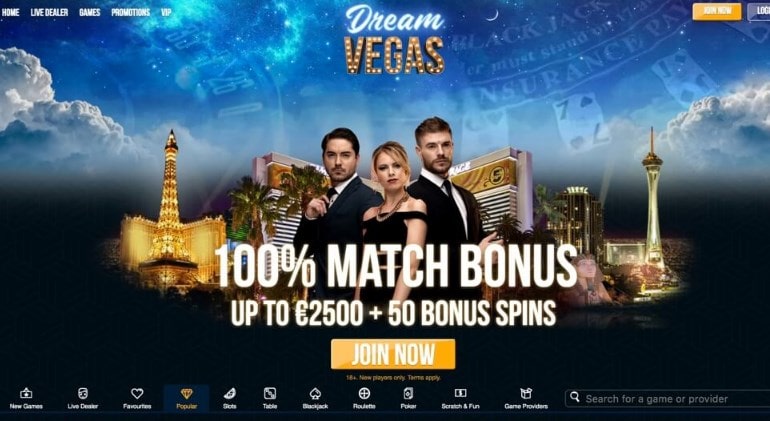 Dream Vegas Casino Games disponível em
