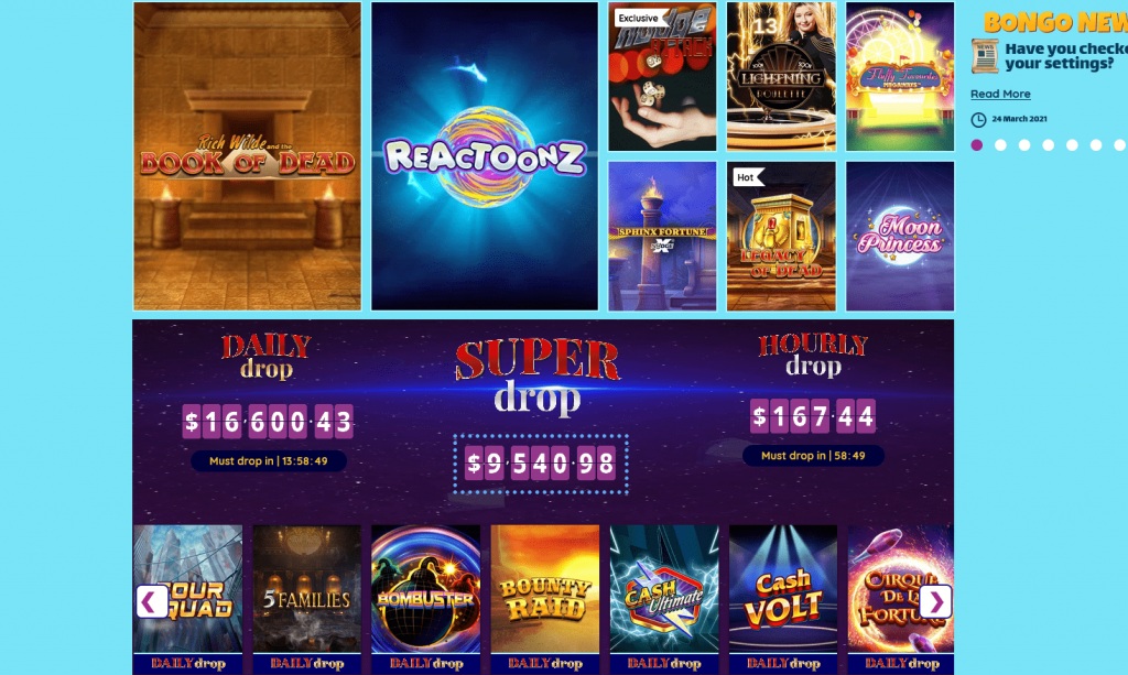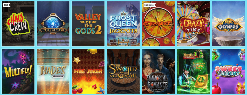 Você também pode jogar jogos de caça -níqueis populares como gemas cansadas de potência selvagem, irmãs de Oz, Starburst, Medallion Megaways, riquezas de arco -íris etc. De todos os slots, os progressistas são mais populares com os mega moolah mais frequentemente jogados, Hall of Gods, Mega Coringa, mega fortuna e fortuna divina.