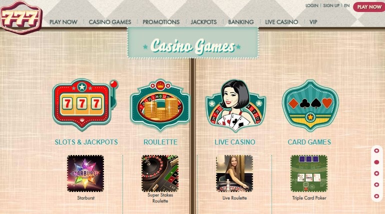 - Slots - Como um dos jogos de jogo mais populares do planeta, um cassino não se chamaria um cassino se não tivesse esses jogos em seu repertório. Eles são extremamente populares e este tem um dos slots mais jogados, incluindo Starburst e Book of Dead. Alguns de seus slots também têm jackpots progressivos, o que atrai ainda mais os jogadores.