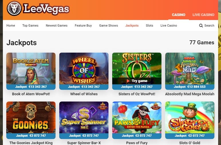 Os slots clássicos e progressivos estão disponíveis, para que você possa jogar o que quiser. Leovegas apresenta uma grande variedade de slots de 3 e 5 bobinas para quem gosta dos clássicos. Este cassino também apresenta alguns dos jackpots progressistas mais populares:
