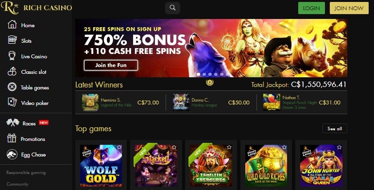 Rich Casino está obviamente disponível na Portugal e em muitos outros países do mundo. Eles operam sob a jurisdição da Costa Rica, que é comum para muitos cassinos online de ponta. Tudo o que podemos acrescentar é que este não é um cassino de golpe e é seguro jogar.