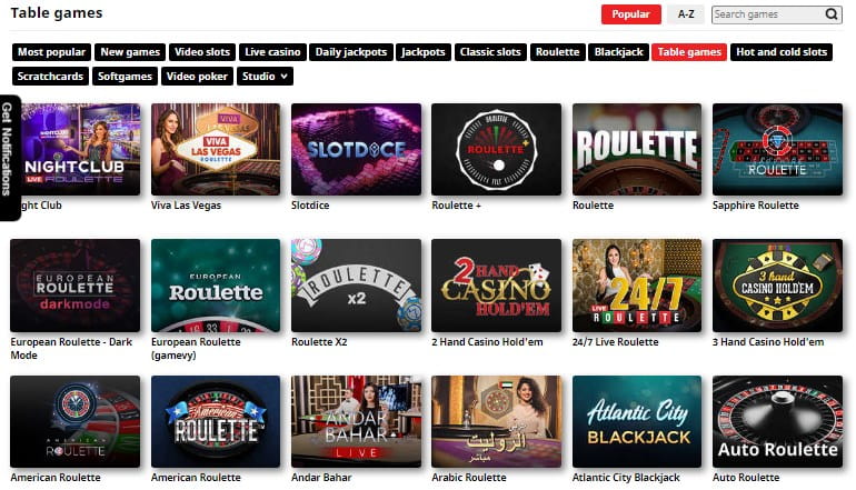 - Jogos de mesa (roleta, blackjack, bacará, poker);